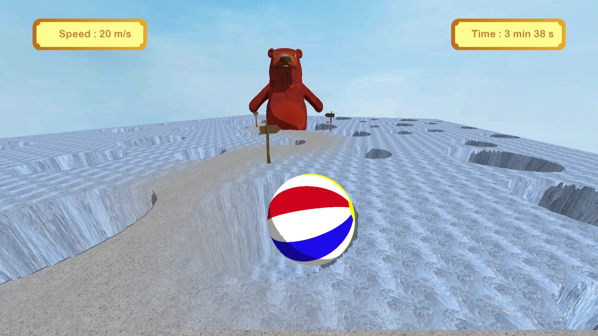 Sur le chemin, le joueur devra sauté par dessus des obstacles, esquivé des enemies au paterne fixe mais surtout fuir les horribles ours des cavernes.